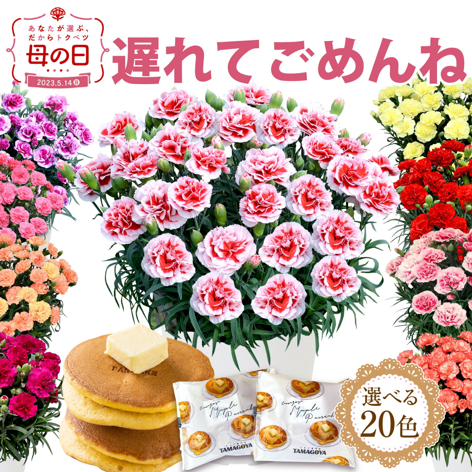 \ポイント10倍&緊急500円クーポン!/ 母の日プレゼント 母の日ギフト 楽天ランキング1位★母の日ギフト 2023 花 カーネーション鉢花 2023 5号 鉢植え 生花 おしゃれ かわいい 送料無料 スイーツ お菓子 ギフトセット 人気パンケーキ2個付き 伊豆村の駅
