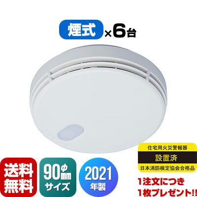 能美防災 住宅用火災警報器まもるくん 煙式6台 FSKJ225-B-N 90ミリサイズ 単独型 電池式 音声式 報知器 国家検定合格品 グッドデザイン賞受賞 送料無料